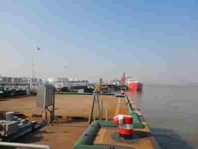 为了配套企业陆域危险化学品生产项目的原料和产品运输,企业在厂区东侧设有危险货物装卸码头。共设码头3个,自北向南依次分别为3万吨级液体化工码头,5万吨级、3千吨级油品码头以及3千吨级燃料油码头。